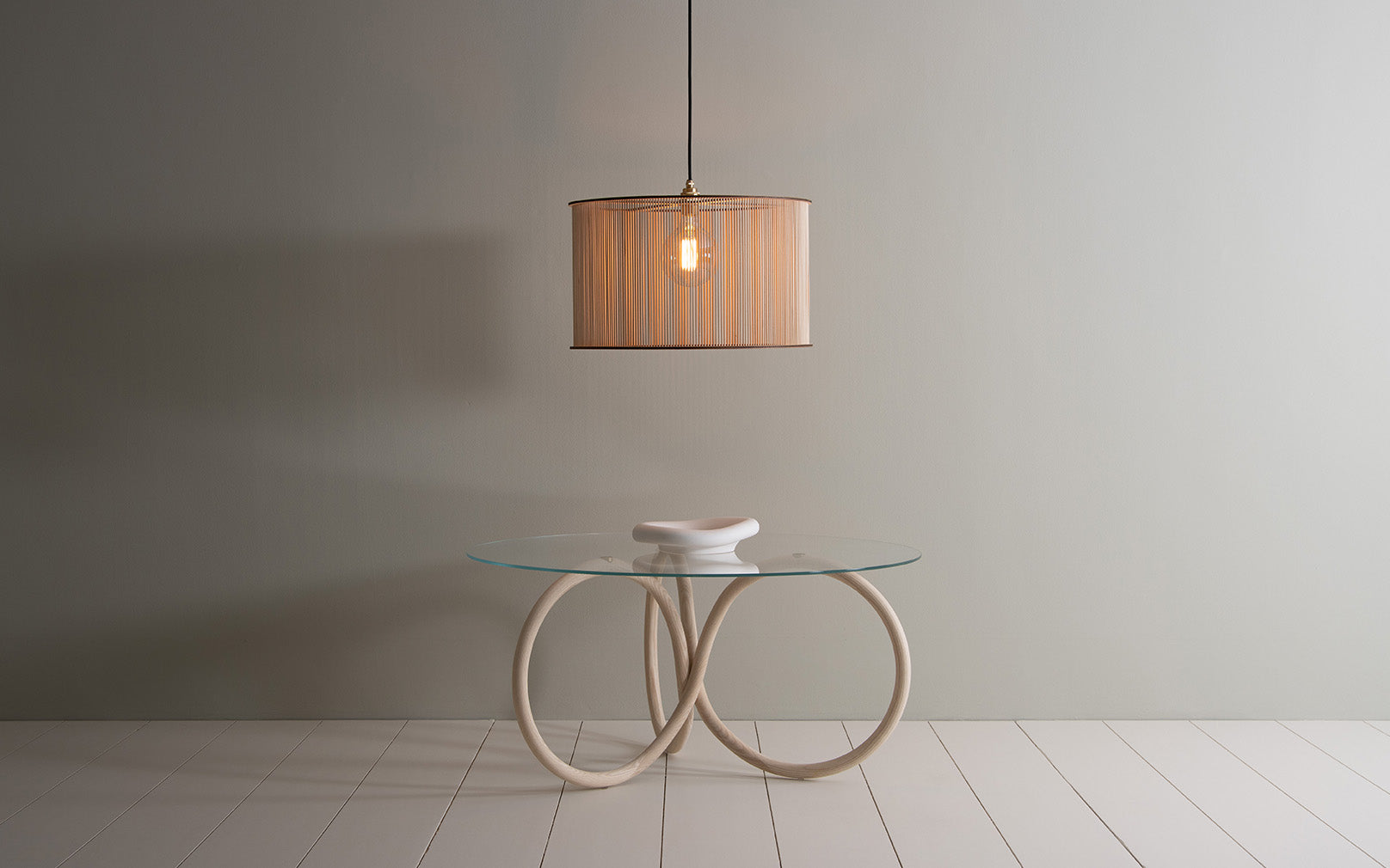 A fine birch dowel cage contains its blown-glass bulb within. Daring yet delicate, the Artus Drum Lighting Range diffracts a mesmerising pattern of shadows, dramatising your space.