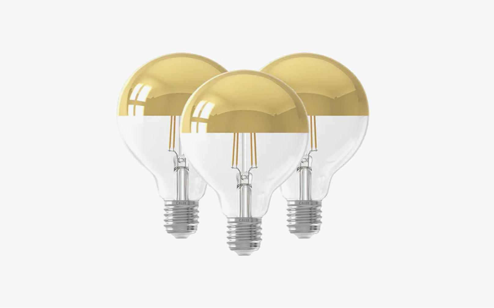 With four specially designed thin filament LED columns partially shielded by a reflective golden cap, each bulb produces a central vortex of warm light and casts light in a unique, memorable way.