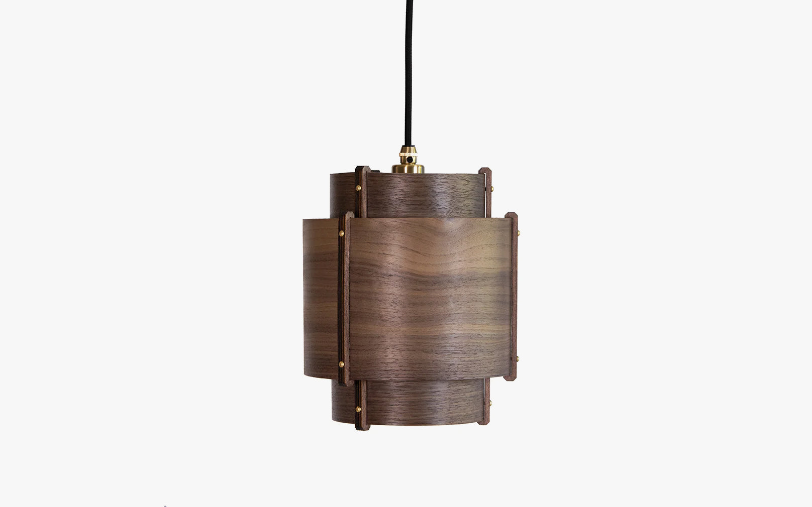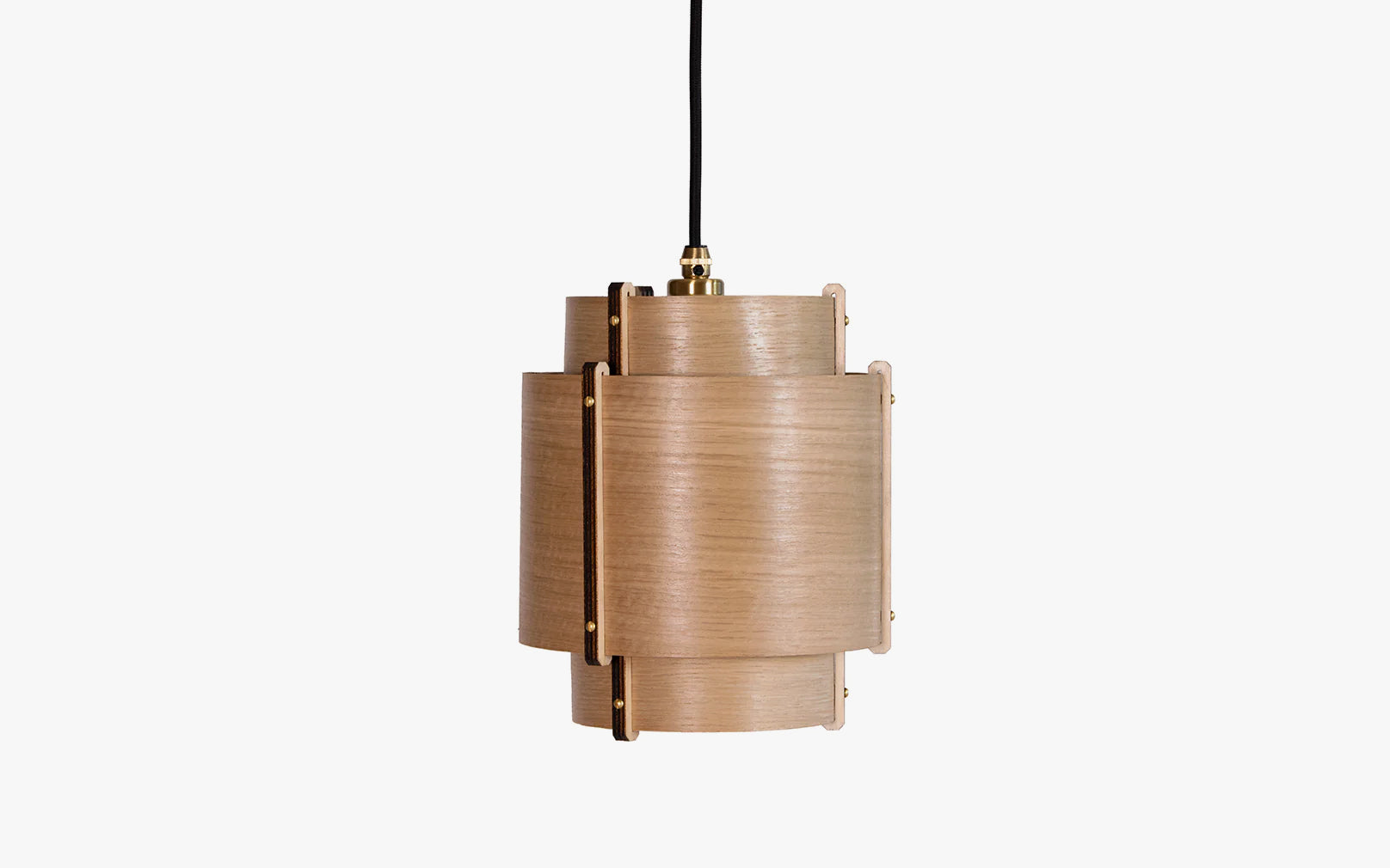 Meaning ‘level’ in Cornish, the Leven Pendant Small is handcrafted using three tiers of curving oak or walnut timber that climb a central plywood frame summit. Secured at the seams with four brass accented rivets, each arching layer of sustainably sourced wood builds a balanced silhouette of careful craftsmanship. A smaller alternative to our Leven Pendant that lends the same layered luminescence to modern interiors. With a blend of Scandinavian and Art Deco aesthetics, use the wooden Leven Pendant Small in multiples to illuminate hallways, dining spaces and kitchens alike. Perfect for creating your own clusters or bringing a soft spotlight effect to specific areas in your space.