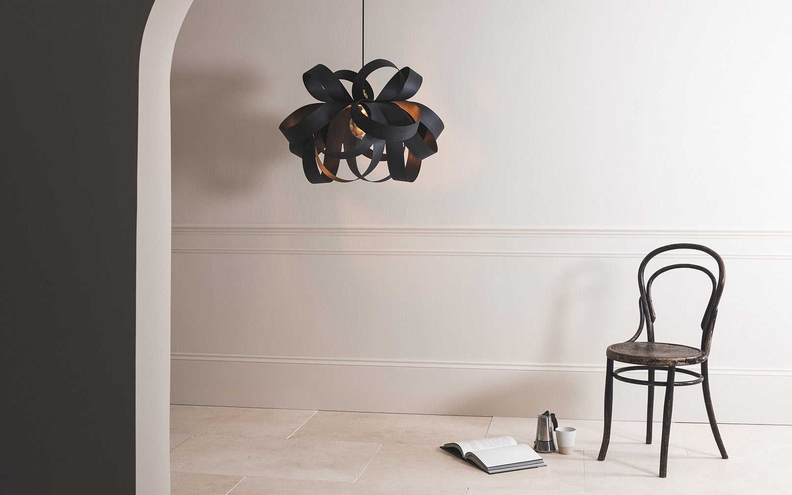 After huge success as a limited edition run earlier this year, we have crafted the full Skipper Lighting Range in this stylish, dark variation. Scandinavian design principles and our sought-after curved aesthetic, merged. Formed from sustainably sourced, ebonised poplar, each Noctis Skipper Pendant Large is individually handcrafted by our skilled workshop team. Casting light up and out from its striking silhouette, the Skipper produces bold light and contrasting shadows, making it the perfect pendant for grand dining space, open plan living spaces and soothing bedrooms.