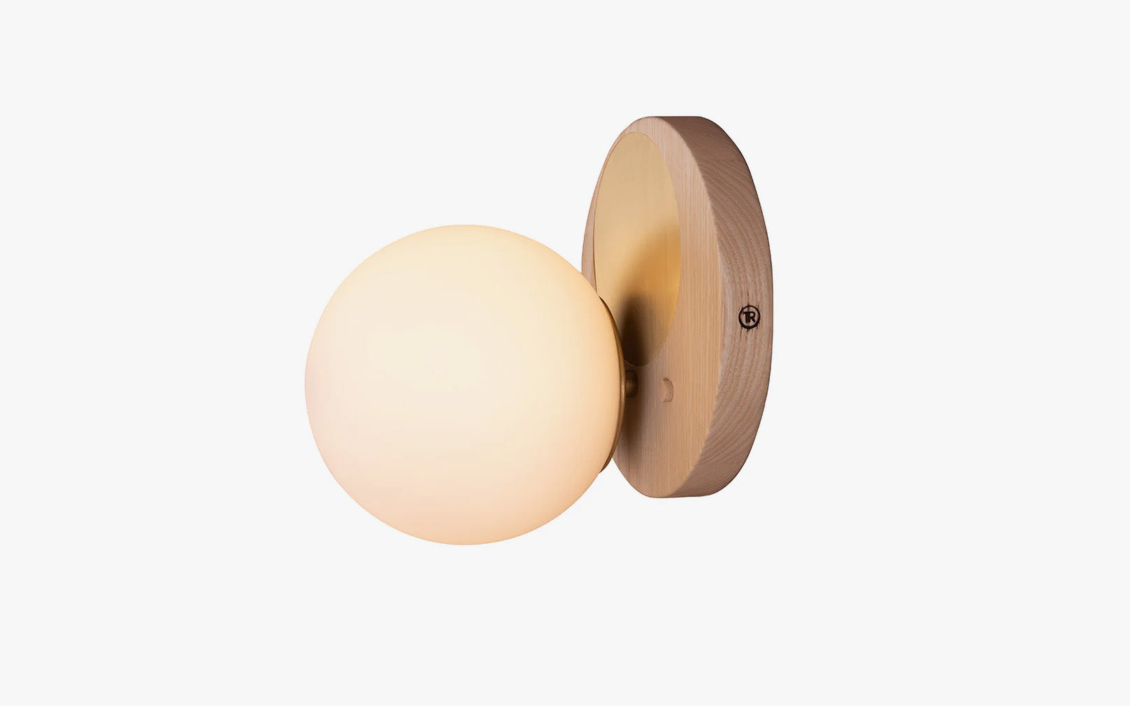 Inspired by the elliptical orbits of the planets and moons that line the inner edges of our vast solar system, the Raya Wall Light brings weightless illumination to any space it reaches. Combining beautiful translucent glass, sustainable steam bent ash wood and brushed metallic brass, the Loer showcases minimal, nature-inspired design at its finest.