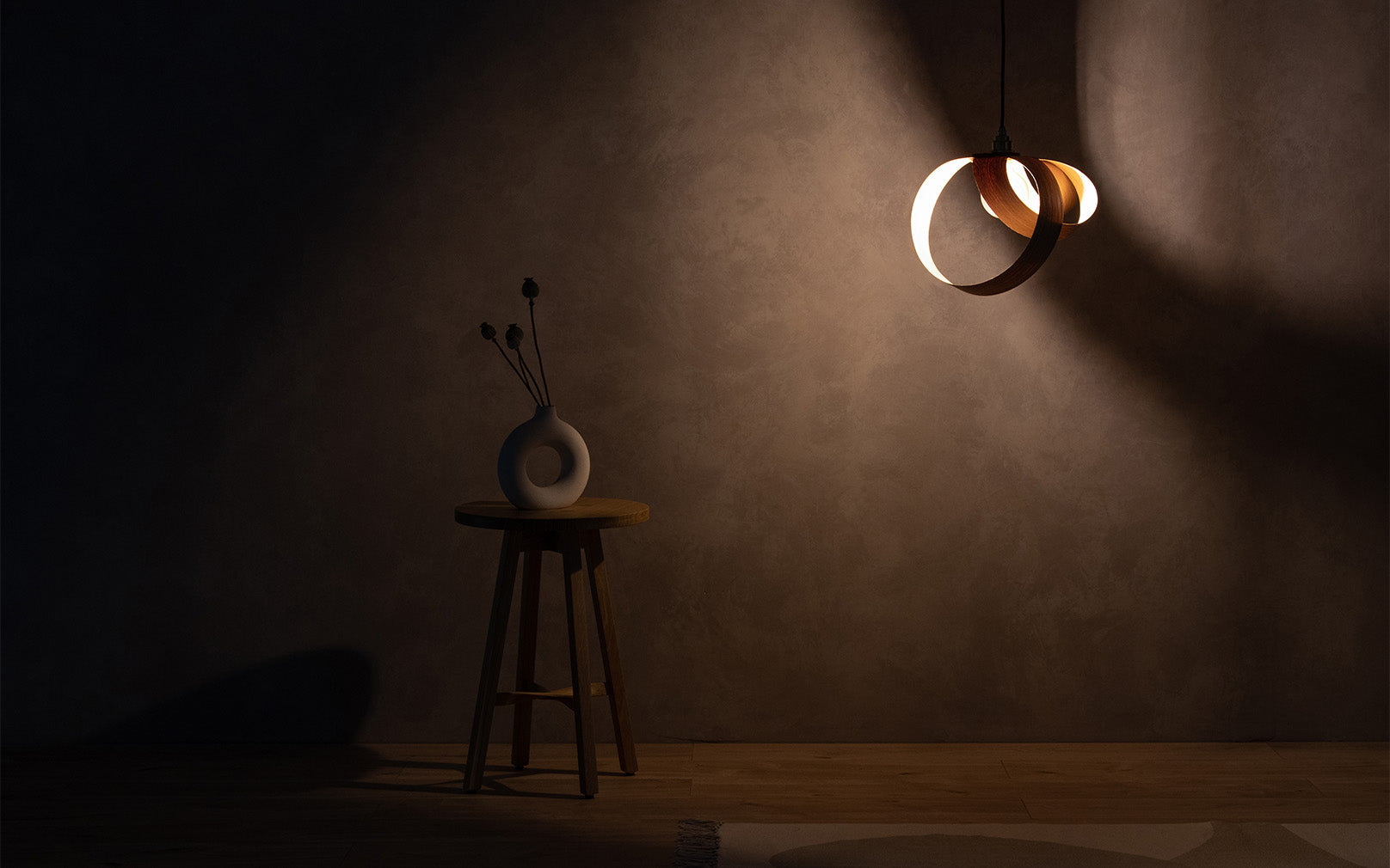 Looping to create eye-catching asymmetry, the Verso Pendant Small is cleverly crafted from one continuous length of sustainably sourced timber that soars around the warm glow of an exposed bulb to cast a beautiful blend of light and shadow across hallways, living spaces and bedrooms alike. Igniting creativity within your space, the Verso Range looks different from every angle and exhibits its varying form to add playful personality to a wide range of interiors.